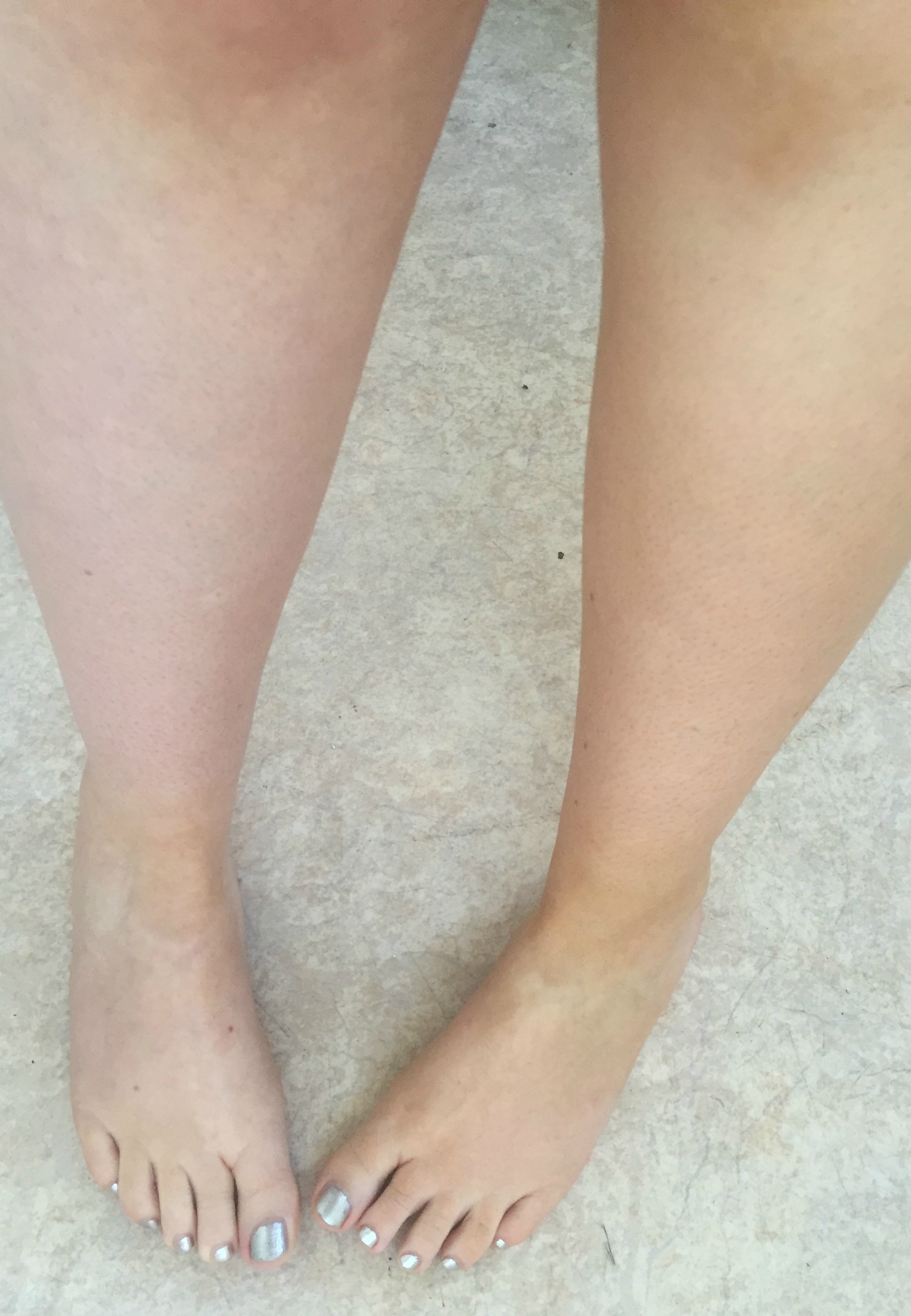 As you can see it gives me an instant, natural looking tan which isn’t too dark. It develops over a few hours into a slightly dark, still natural looking olive tone and I actually really like the result. It does the usual slightly-darker-around-the-knees thing like most tans do but that doesn’t bother me. I love the instant colour.