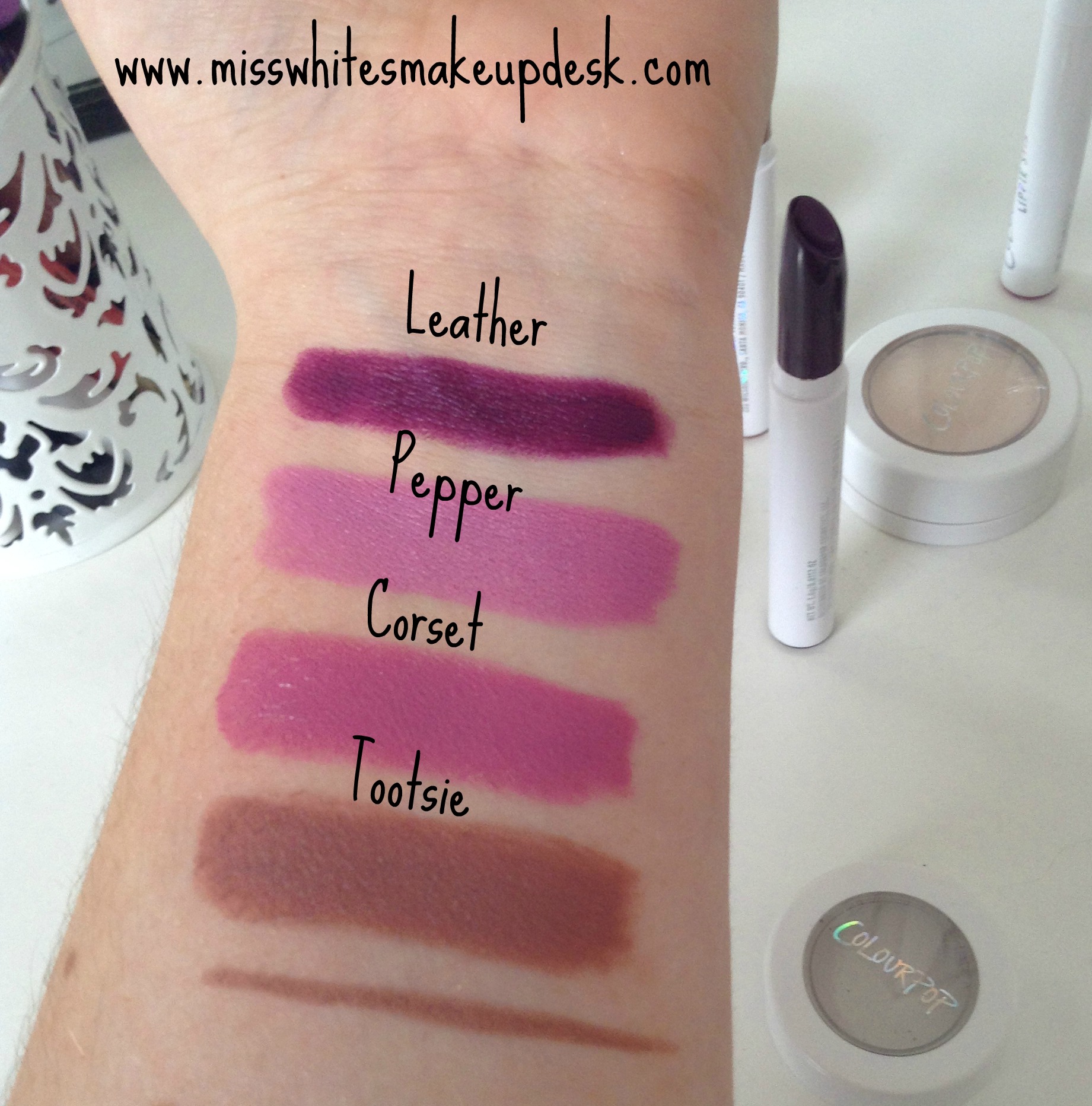 I got four Lippie Stix in the colours Pepper, Tootsie, Leather and Corset + the matching Lippie Pencil for Tootsie.